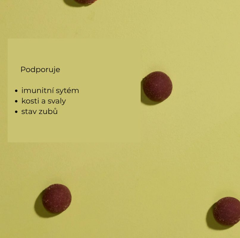Tyto bonbony představují základní podporu imunitního systému v kombinaci s prospěšnými látkami z celých plodů. Každé balení vitamínových bonbonů s Vitamínem D obsahuje 13 celých plodů, které poskytují účinnou podporu imunitnímu systému a funkci kostí, svalů a zubů.